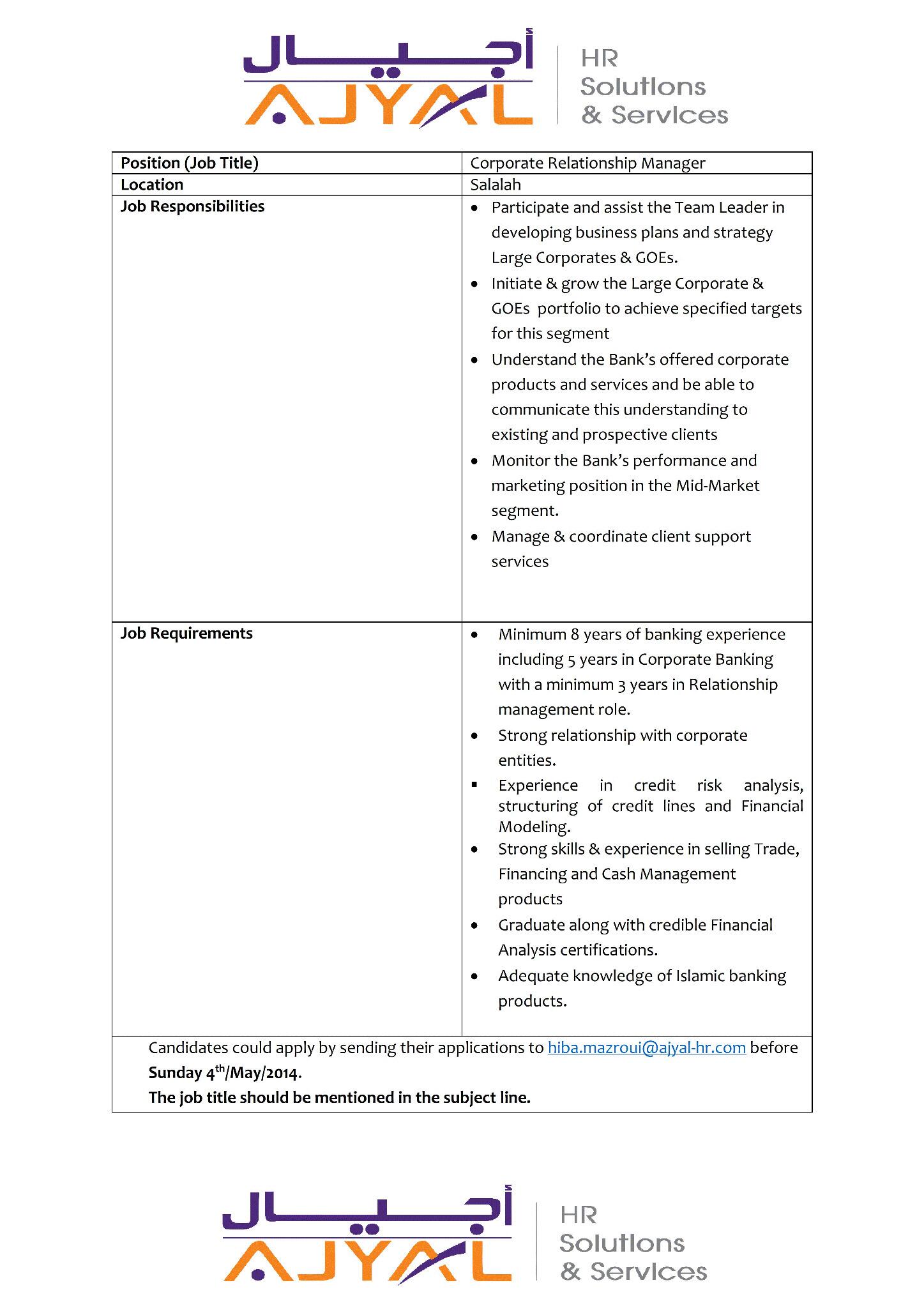 Trade Finance Relationship Manager Job Description / National Bank Pakistan Nbp Relationship Manager Jobs 2019 : Reach over 250 million candidates.. A customer relationship manager is hired by companies that value their relationships with customers. What does a customer relationship manager do? Participates actively in the designing and organizing of public relations activities. Assistant manager / deputy manager grade. This relationship manager job description template is optimized for posting to online job boards or careers pages and easy to customize for your company.
