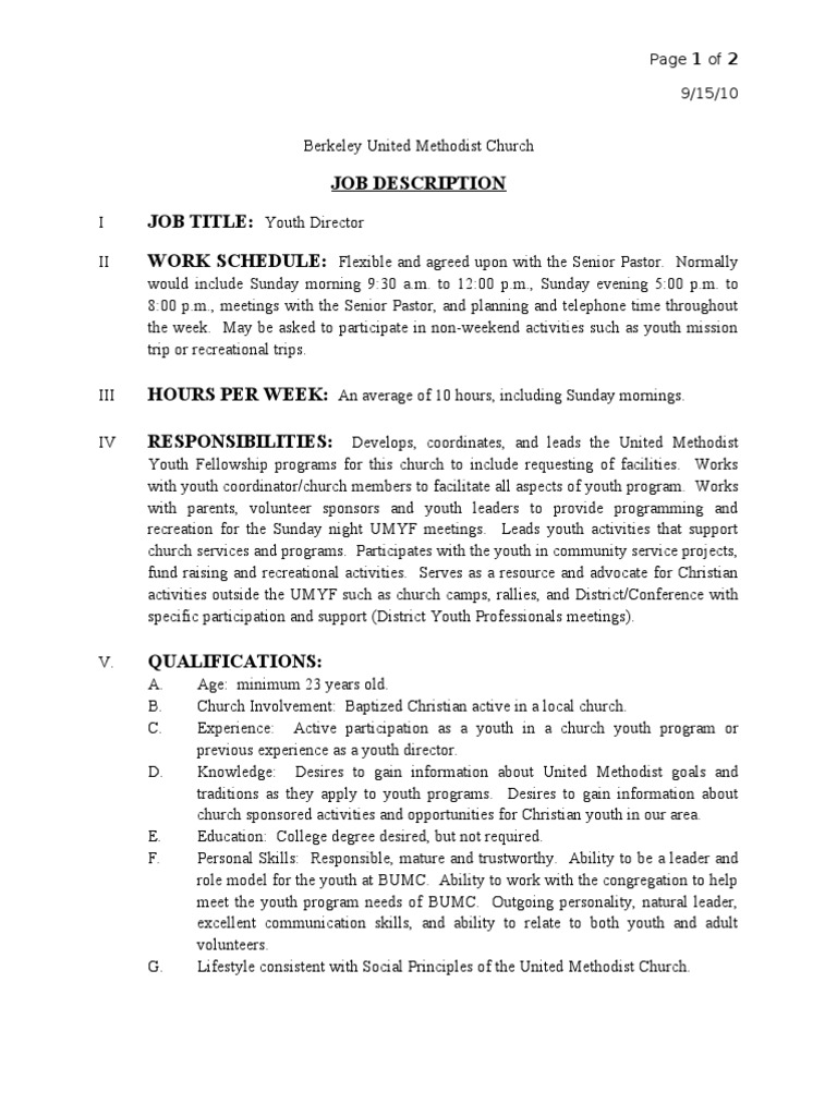 Finance manager, job descriptions, officer job descriptions. Ministry description of each committee and recommend change involving structure, membership, election. Please send your resume to email protected. Clearly communicate monthly and annual financial statements; This committee can influence sustained financial the youth director will then present a budget based on program needs and strategy.